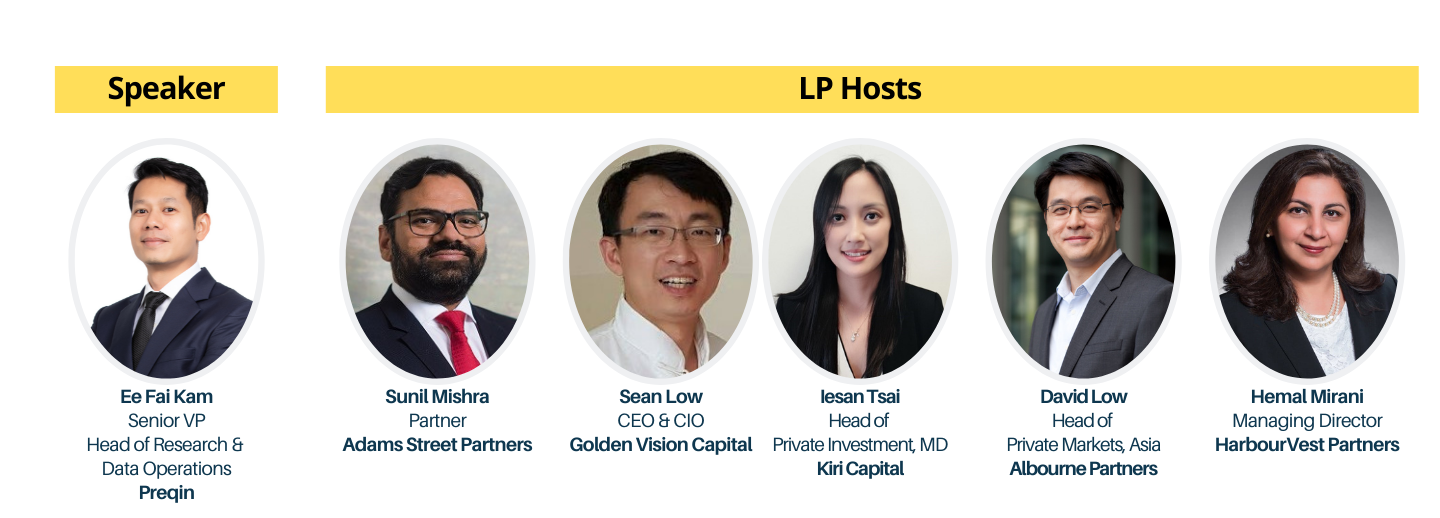 2021 has seen more new deals and exits, a testament to the resilience of the Private Equity and Venture Capital industry in these challenging times. The event was led by speaker Ee Fai Kam, Senior VP, Head of Research & Data Operations at Preqin. LP hosts included Sunil Mishra, Sean Low, Iesan Tsai, David Low, and Hemal Mirani.